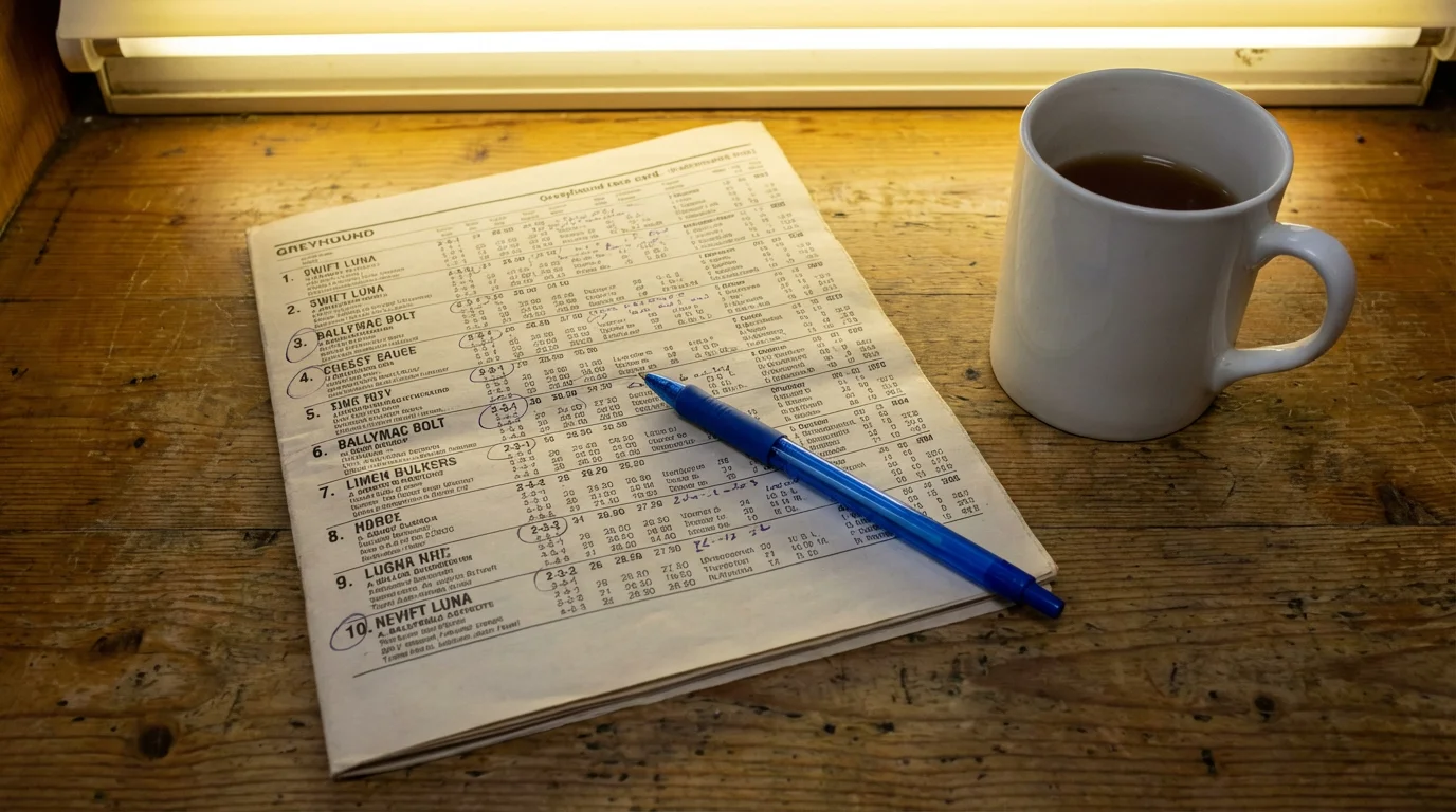 Every winning greyhound bet starts with the same thing: a race card that most punters glance at but never properly read. The card is a compressed biography of every dog in the race — its recent runs, its speed, its quirks in the traps, the name of the person who feeds it and trains it. All of that sits in a few lines of text and numbers, and the gap between the punter who understands it and the one who skips to the odds is enormous.